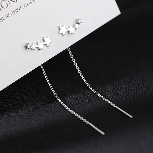 Drop Ear Line Long Hanging Earrings For Women Rose Gold Color Zircon Crystal Piercing Threader Earing Ear Accessories Jewelry